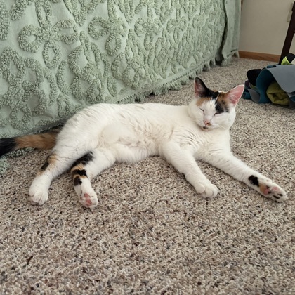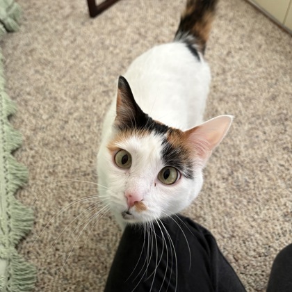 Violet is a sweet girl who loves to play once she's out of her shell. She is shy at first, but give her wet food and a feather toy and she'll be your best friend. She is very sweet and makes the cutest little trills! If you have any questions or would like to set up a meet and greet, please email me at huckleshouse@gmail.com