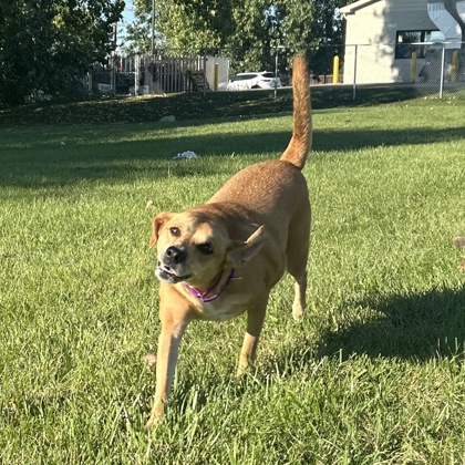 "Dedee is the sweetest, most lovable girl and her favorite thing to do is roll over for belly scratches. She is absolutely wonderful on her leash and loves to go on long walks. When shes at home as long as your by her side she will plop down anywhere and take a nap and snuggle with you. She loves her toys and chew sticks and will be perfectly content. Please consider her for adoption and you'll have your the best snuggler for life."