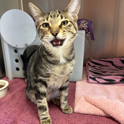 Violet has been in foster with siblings. Here is what the foster has to say -Violet is the ultimate lovebug of the bunch. She's always the first to greet you, flopping over for belly rubs and soaking up every pet like it's her favorite thing (because it is!). Her sweet, gentle nature and instant trust will melt your heart. If you're looking for a kitty that gives love as fast as she receives it-Violet's your girl.