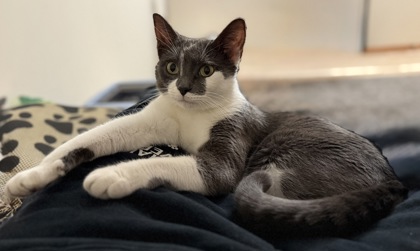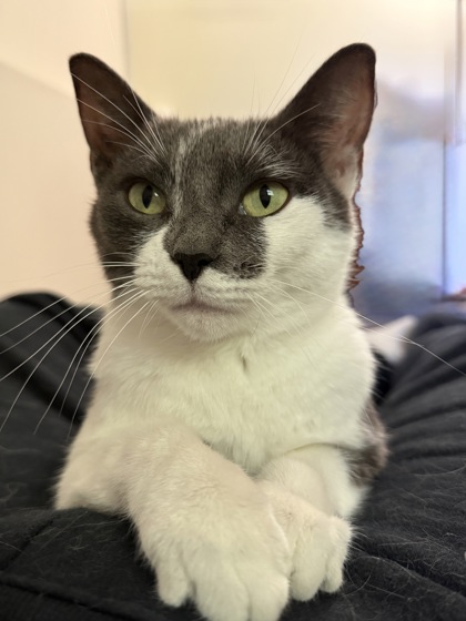 Opal is a sweet and playful kitty! She's absolutely mesmerizing with her stunning green eyes and lovely grey and white coat. Her favorite activities include chasing the cat dancer and batting around her catnip toy! She also enjoys watching the birds out the window from the cat tree. She loves cheek scratches and will lean into them while purring! She also loves curling up for a nap with her foster parents. If you would like to meet this sweet girl please email her foster mom at Rozzy617@live.com