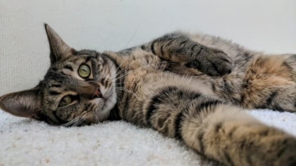 Louie is a handsome green-eyed guy looking for someone who wants a mix of cuddle/play time and introverted alone time. He runs to greet you with a friendly meow, enjoys being brushed and sitting on your lap, and chases ribbons. Louie will even snuggle up under your blanket while you read a book. He has been a polite house guest with some fun preferences like drinking running water from the faucet! Louie is friendly with younger children and likes pets from them though he appreciates a safe space that he can retreat to if needed. He has seen dogs through a baby gate and seems receptive to them with slow introductions. Louie would fit in well in almost any household and is a great pick for a family or someone starting out with their first cat!