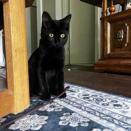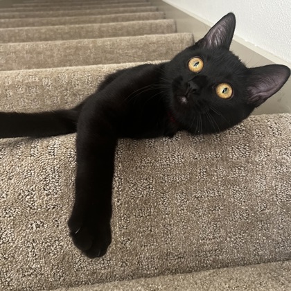 Tres is a playful, curious kitten who loves head scratches and belly rubs once she gets to know you! She also likes to give you nose kisses and "talk" (trills and meows) to you. She especially likes toy balls, string, and wand toys. She tends to explore watery areas - such as sinks and showers. If you're interested in a silly, playful and chatty companion, Tres could be the cat for you!